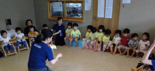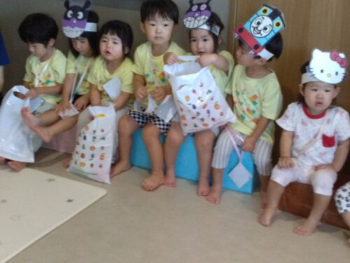 夏まつり会が終わった後は、にこにこ笑顔の子どもたち。