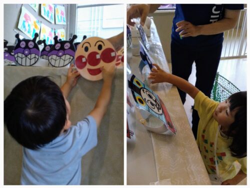 上手に入れられたお友だちにはお面のプレゼントがありますよ😊