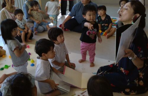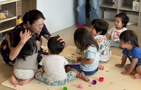 絵本の読み聞かせの前に、一緒に遊んだりおしゃべりしたりと自然と溶け込まれていました。