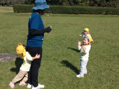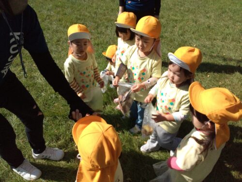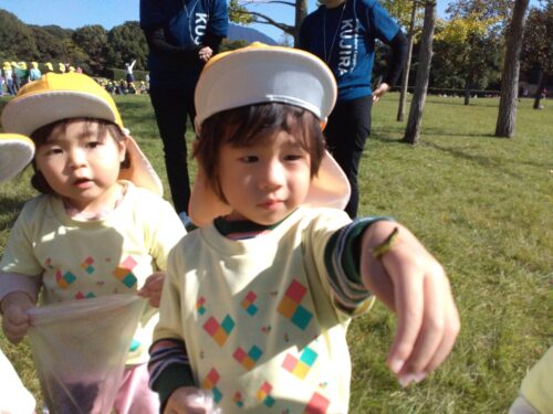 広い広場で、たくさん体を動かして遊んだり、落ち葉拾いや虫探しをして楽しみました。