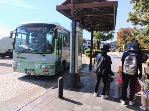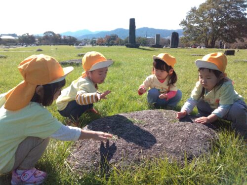 あめ組(2歳児)は、バス(まほろば号)に乗って大宰府政庁跡に行きました。