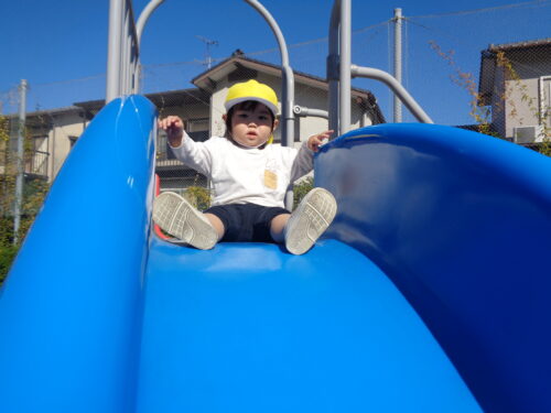 うみ組とだいち組は、平野公園の遊具で遊んだり、