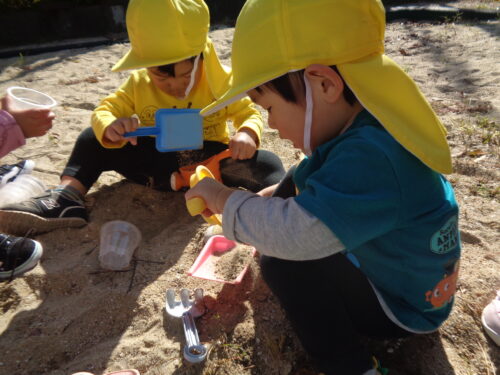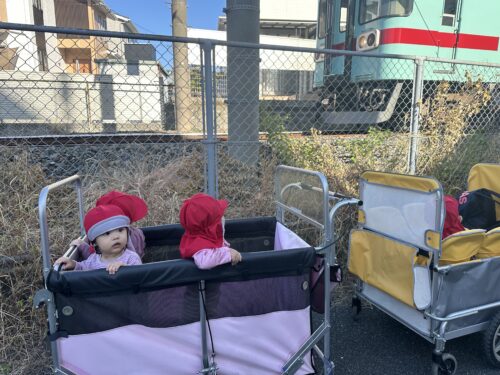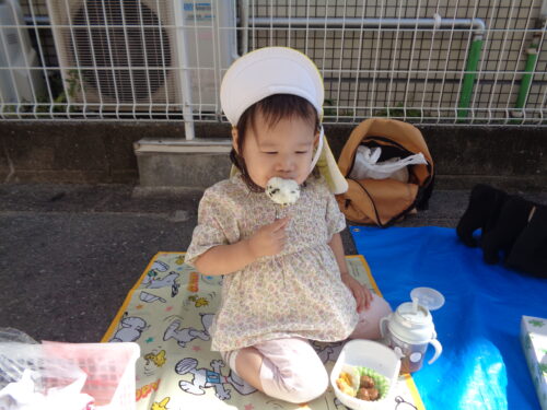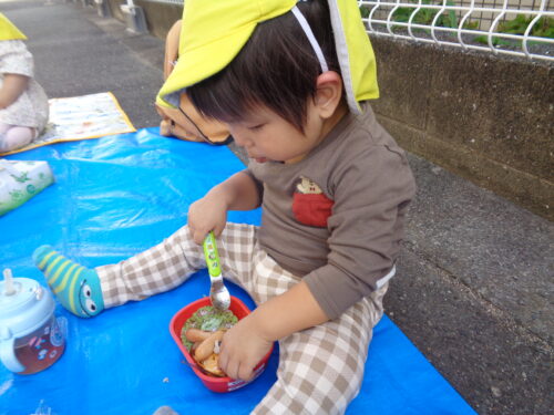 うみ組(0歳児)とだいち組(1歳児)は平野公園、