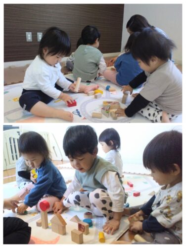 真剣な表情がステキですね。積み重ねるだけではなく、自分たちで考えて遊ぶこともできるようになりました🌟