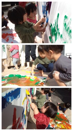 あめ組(2歳児)が絵の具あそびを行いました。