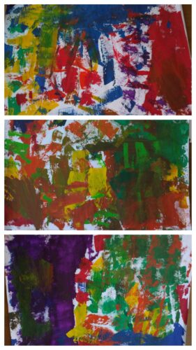 自分の好きな色を選ぶと、早速 絵の具あそびが始まりました!