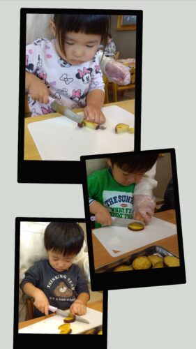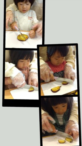 今日はここでお終いではなく、あめ組は初めて包丁で切ることにも挑戦しました。