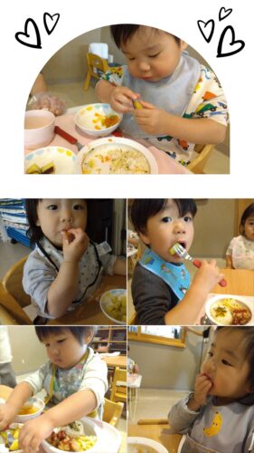 だいち組、うみ組(0歳児)も給食で美味しくいただきました♬