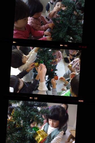 今日 クリスマスまで1か月ということで、ツリーの飾り付けもしました。