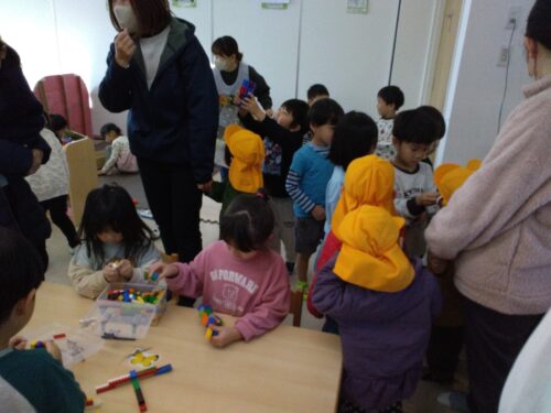 初めての場所に緊張しながらも、制作物やおもちゃに興味津々の子どもたち✨