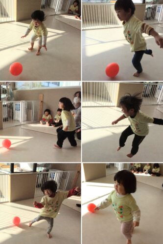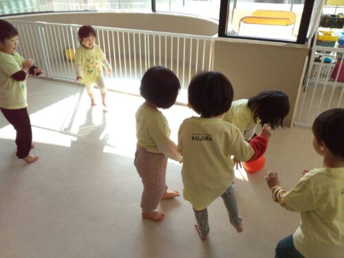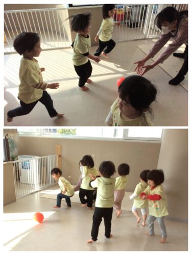 あめ組(2歳児)は毎月エンジョイボールを行っています。