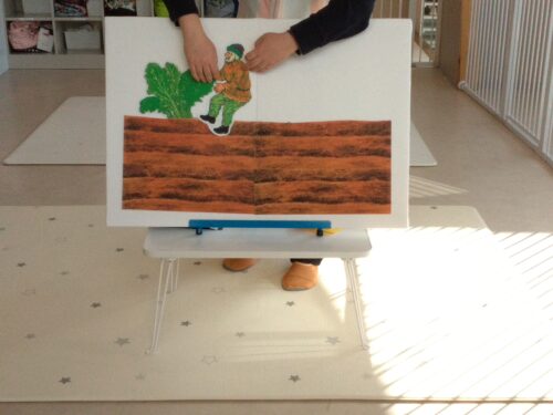 まずは保育士の出し物…今日はパネルシアター『おおきな かぶ』でした。