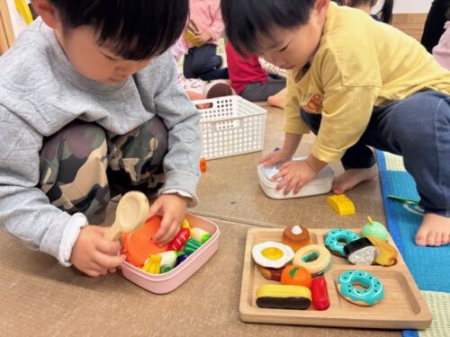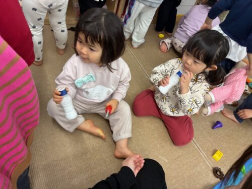 みんな、にじ組のおもちゃに興味津々で夢中になって遊んでいました。