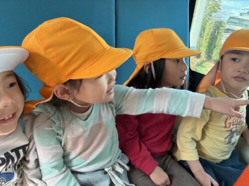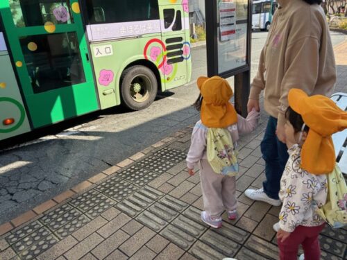 連携園の太宰府くじら保育園へ太宰府市のコミュニティバス『まほろば号』に乗って出発です!