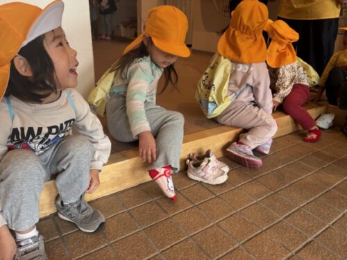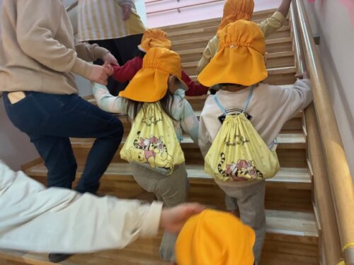 なんと、4月から同じにじ組の友だちとなる太宰府くじら保育園のあめ組の子どもたちが待っててくれました!