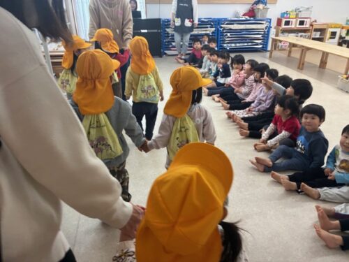 ご挨拶をして、朝の歌 や ちょうちょなど、一緒に歌を歌いました。