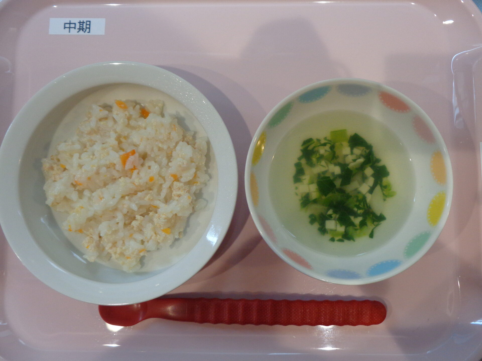 2024.04.15 給食写真 2024年4月15日 給食 【普通食】 三色そぼろ丼・もやしの胡麻味噌サラダ・豆腐のすまし汁・オレンジジュ-ス 【離乳食・後期】 鶏そぼろ粥・豆腐のすまし汁 【離乳食・中期】 鶏そぼろ粥・豆腐のすまし汁 一覧へ戻る