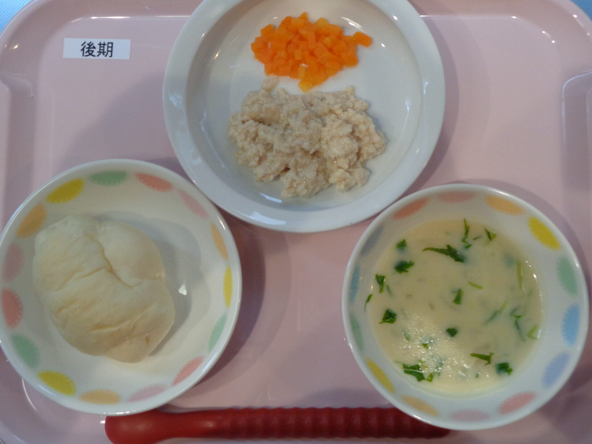 2024.05.01 給食写真 2024年5月1日 給食 【普通食】 ロールパン・鶏のマーマレード焼き・マカロニサラダ・コーンスープ 【離乳食・後期】 ロールパン・鶏の煮物・人参の甘煮・コーンスープ 一覧へ戻る