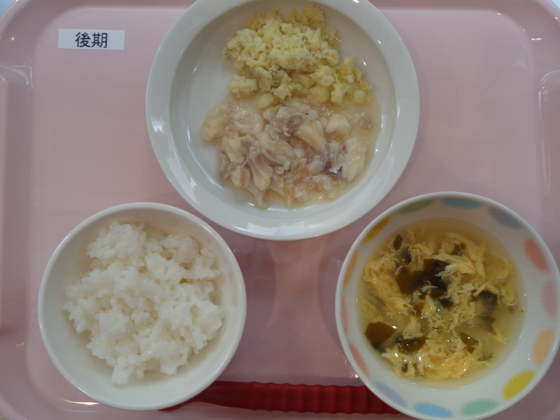 軟飯・魚の煮物・さつま芋のマッシュ・卵スープ