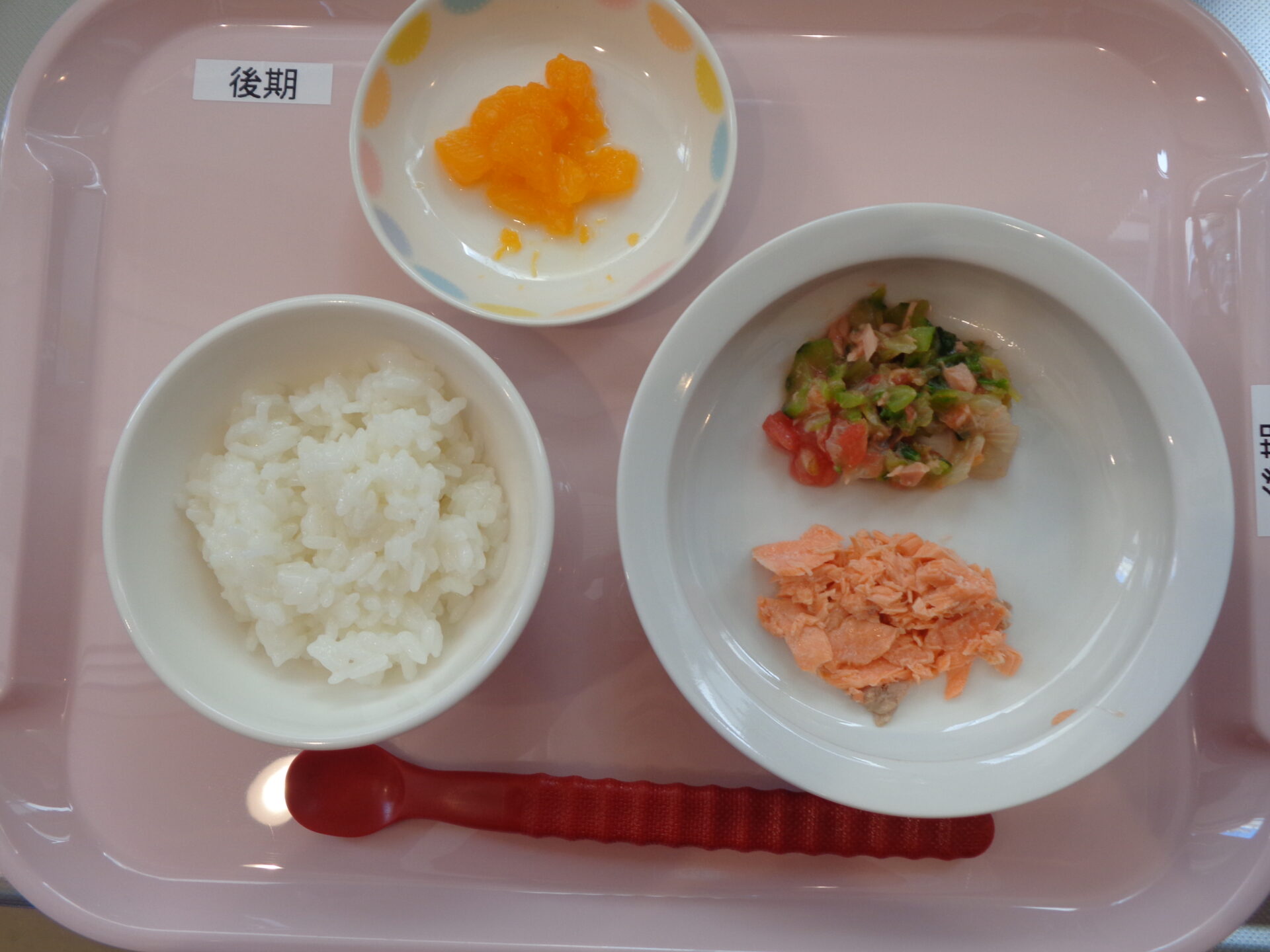 軟飯・魚の煮物・トマトサラダ・みかん缶