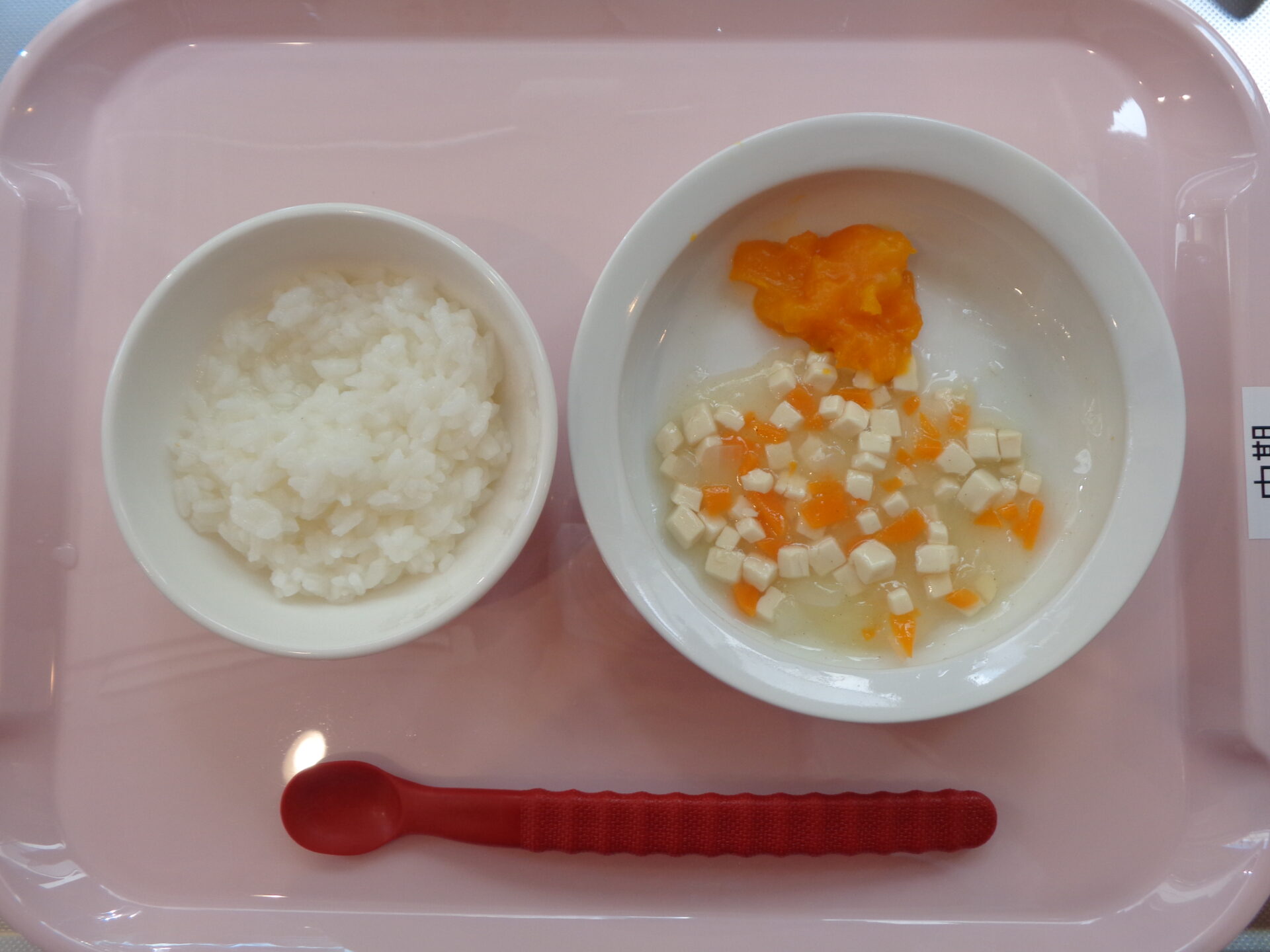 お粥・豆腐と野菜の煮物・かぼちゃのマッシュ