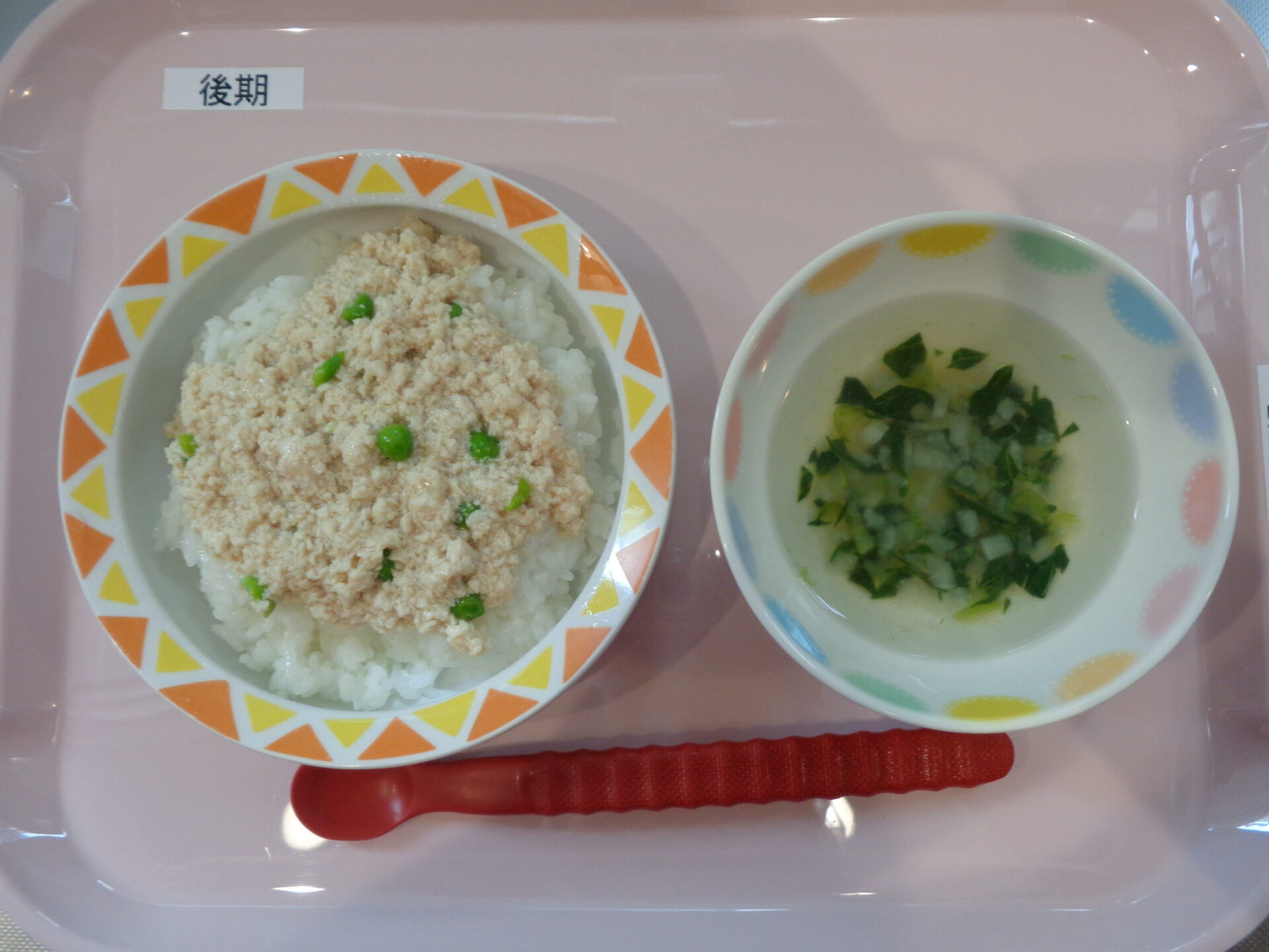 2024.05.30 給食写真 2024年5月30日 給食 【普通食】 親子丼・大豆とひじきのサラダ・すまし汁 【離乳食・後期】 あんかけ丼・すまし汁 【離乳食・中期】 あんかけ粥・小松菜のすまし汁 一覧へ戻る