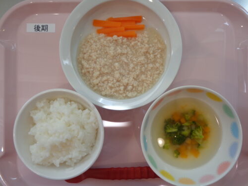 ・七倍粥 ・鶏肉の煮物 ・ブロッコリーのスープ
