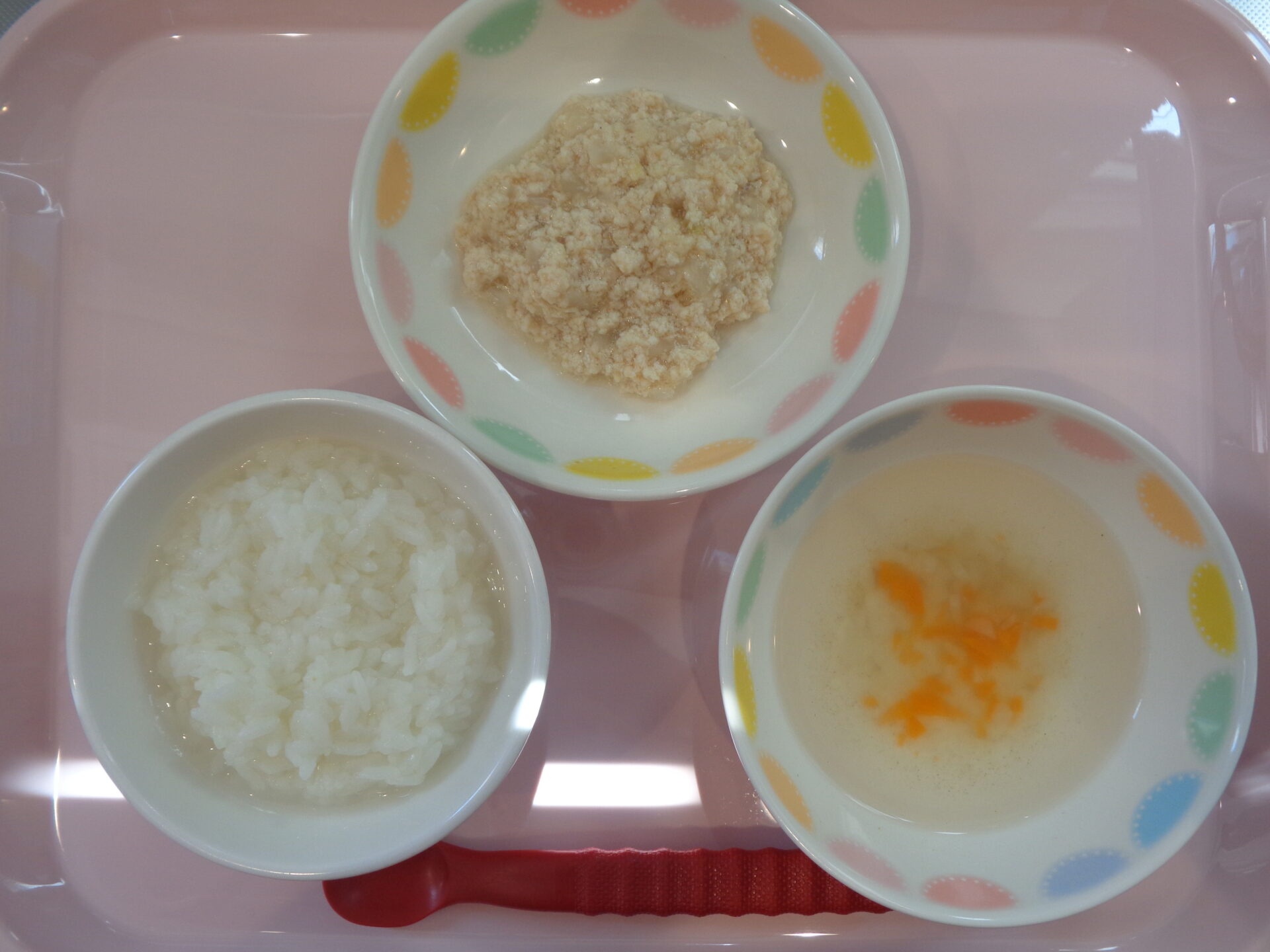 七倍がゆ・鶏ひき肉と玉ねぎの煮物・だいこんとにんじんのスープ