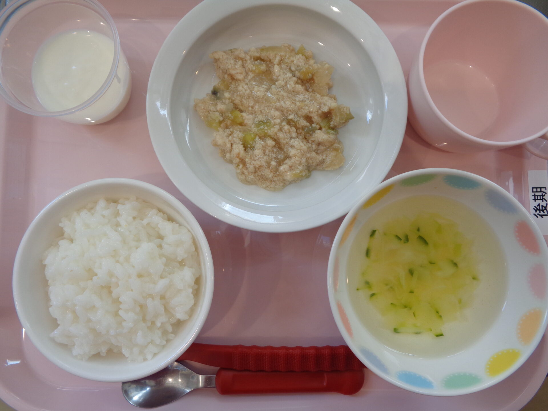 ご飯・鶏となすの旨煮・きやべつのスープ・ヨーグルト