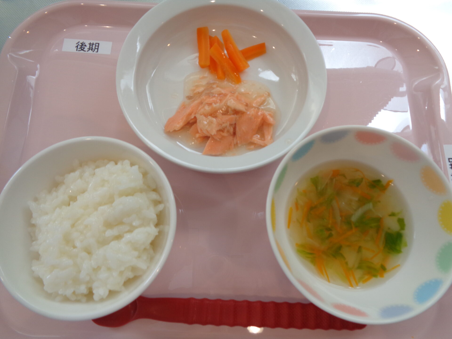 2024.08.19 給食写真 2024年8月19日 給食(オリンピックメニュー) 【普通食】 ごはん・鶏のピカタ・キャロットラペ・ジュリエンヌスープ・リンゴ缶 【離乳食・後期】 ごはん・魚のやわらか煮・にんじんスティック・ジュリエンヌスープ 一覧へ戻る