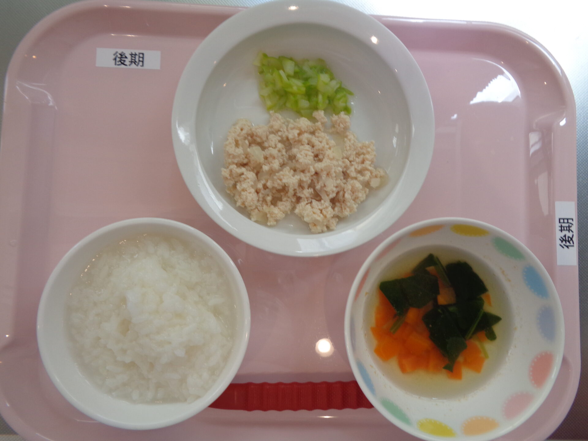 2024.08.20 給食写真 2024年8月 給食 【普通食】 麦ごはん・ささみフライ・アスパラとひじきの胡麻和え・味噌汁 【離乳食・後期】 ごはん・ささ身のやわらか煮・アスパラのやわらか煮・ほうれん草スープ 一覧へ戻る