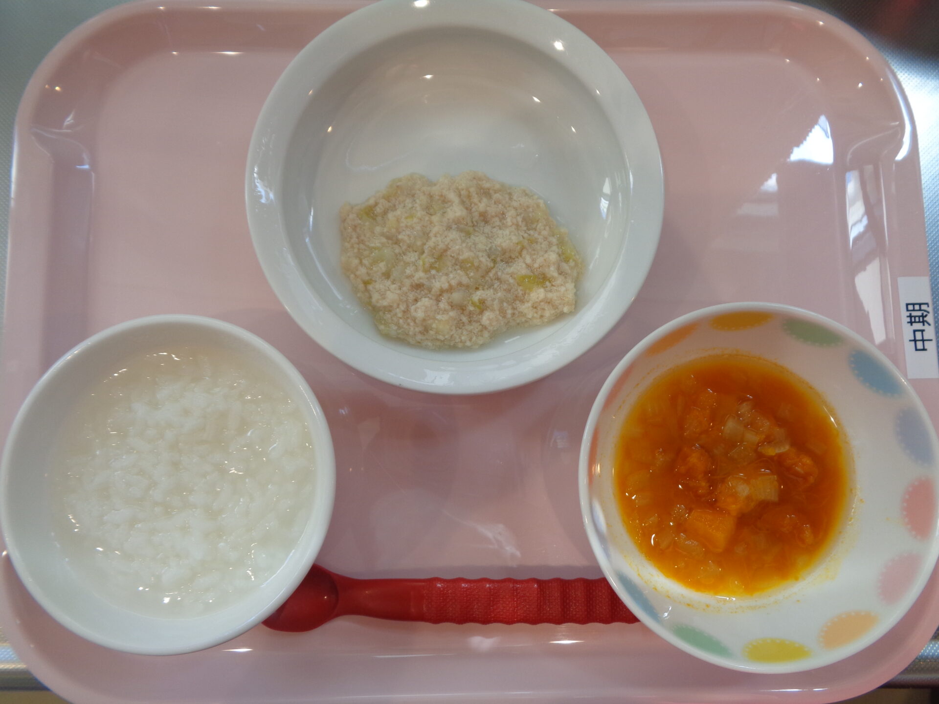 おかゆ・ささみとキャベツの煮物・かぼちゃのスープ