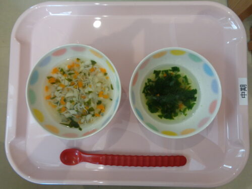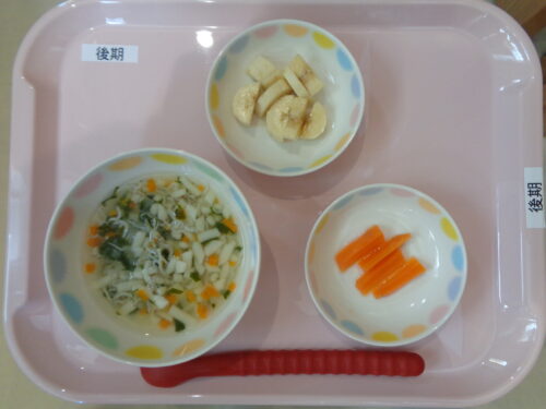 2024.09.10 給食写真 9月10日 給食 【普通食】 ・カレーうどん ・ひじきサラダ ・バナナ 【後期食】 ・五目うどん ・にんじんスティック ・バナナ 【中期食】 ・五目うどん ・ほうれん草のスープ 一覧へ戻る