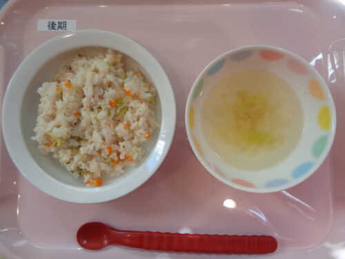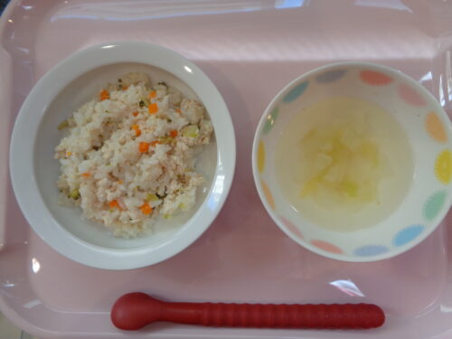 2024.09.18 給食写真 9月18日 給食 【普通食】 ・豚丼 ・ブロッコリーの中華和え ・春雨スープ 【中期食】 ・鶏ぞうすい ・白菜の中華スープ 【中期食】 ・鶏ぞうすい ・白菜のスープ 一覧へ戻る