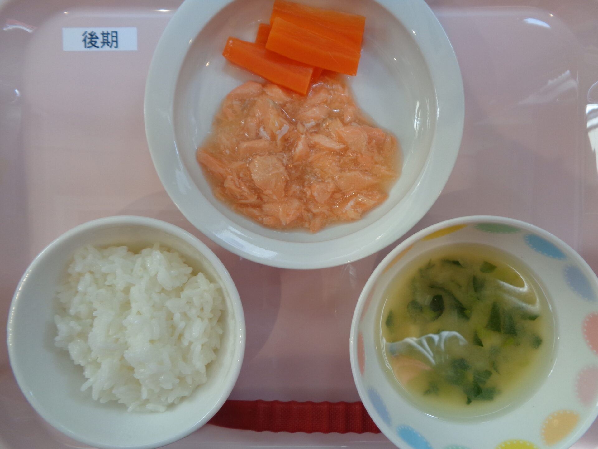 軟飯・魚のやわらか煮・にんじんスティック・豆腐のみそ汁