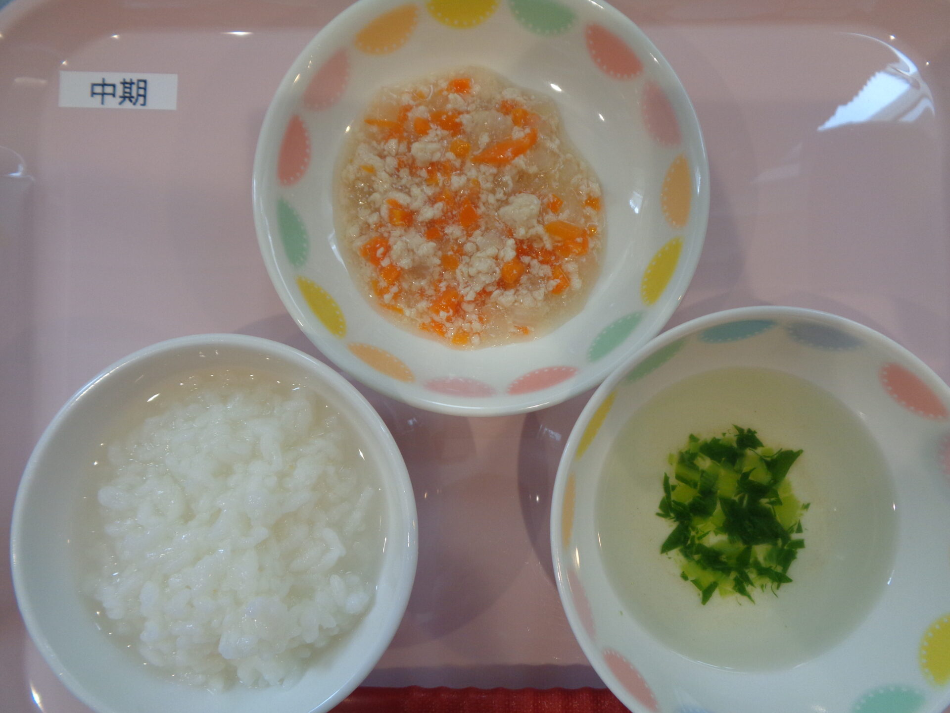 おかゆ・豆腐と野菜の煮物・チンゲン菜のすまし汁