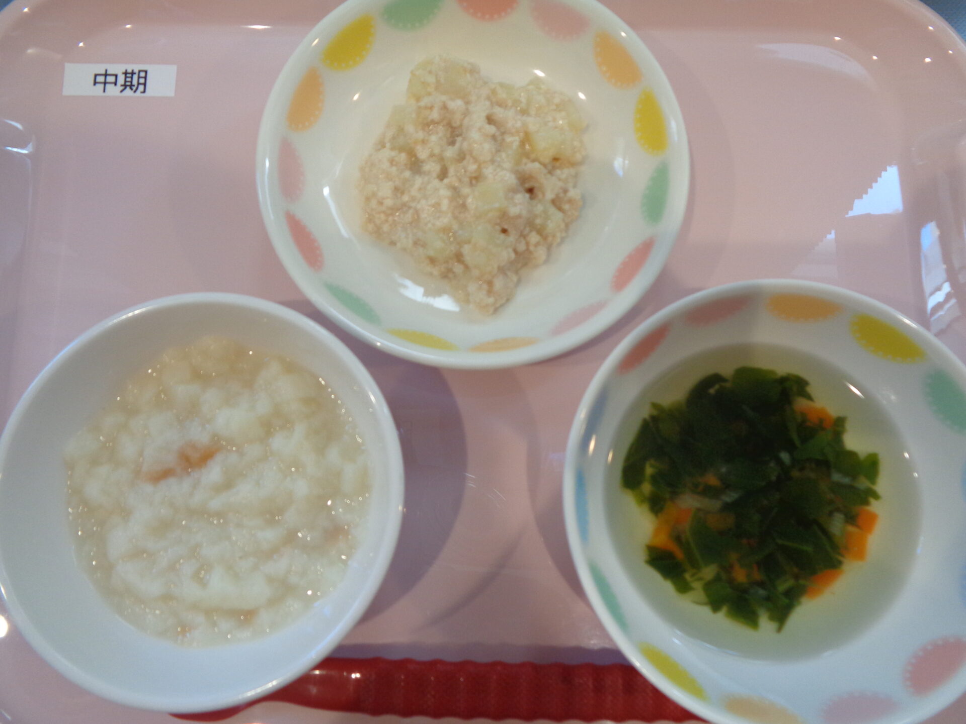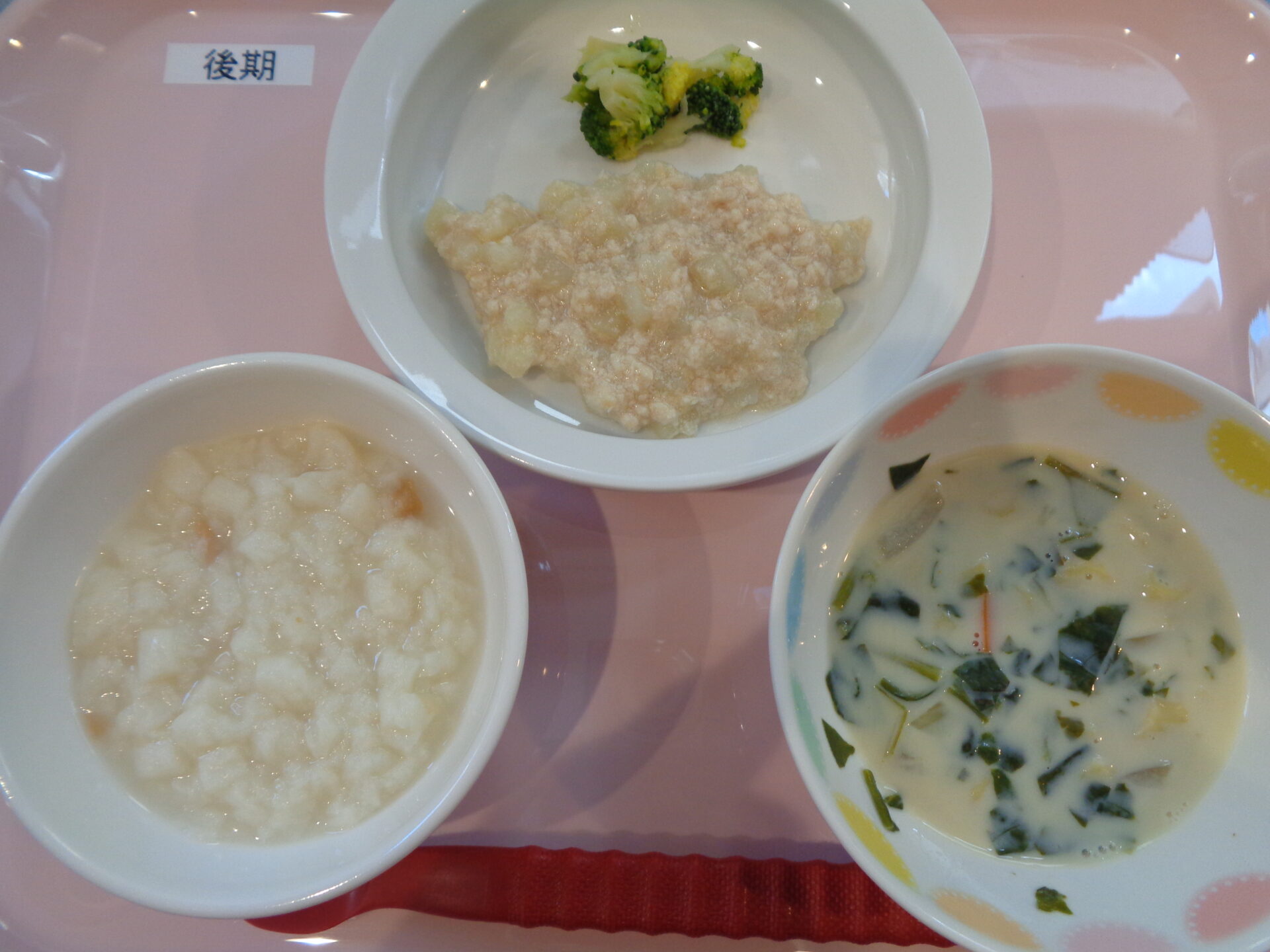 パン粥・鶏とじゃが芋の旨煮・ほうれん草のスープ