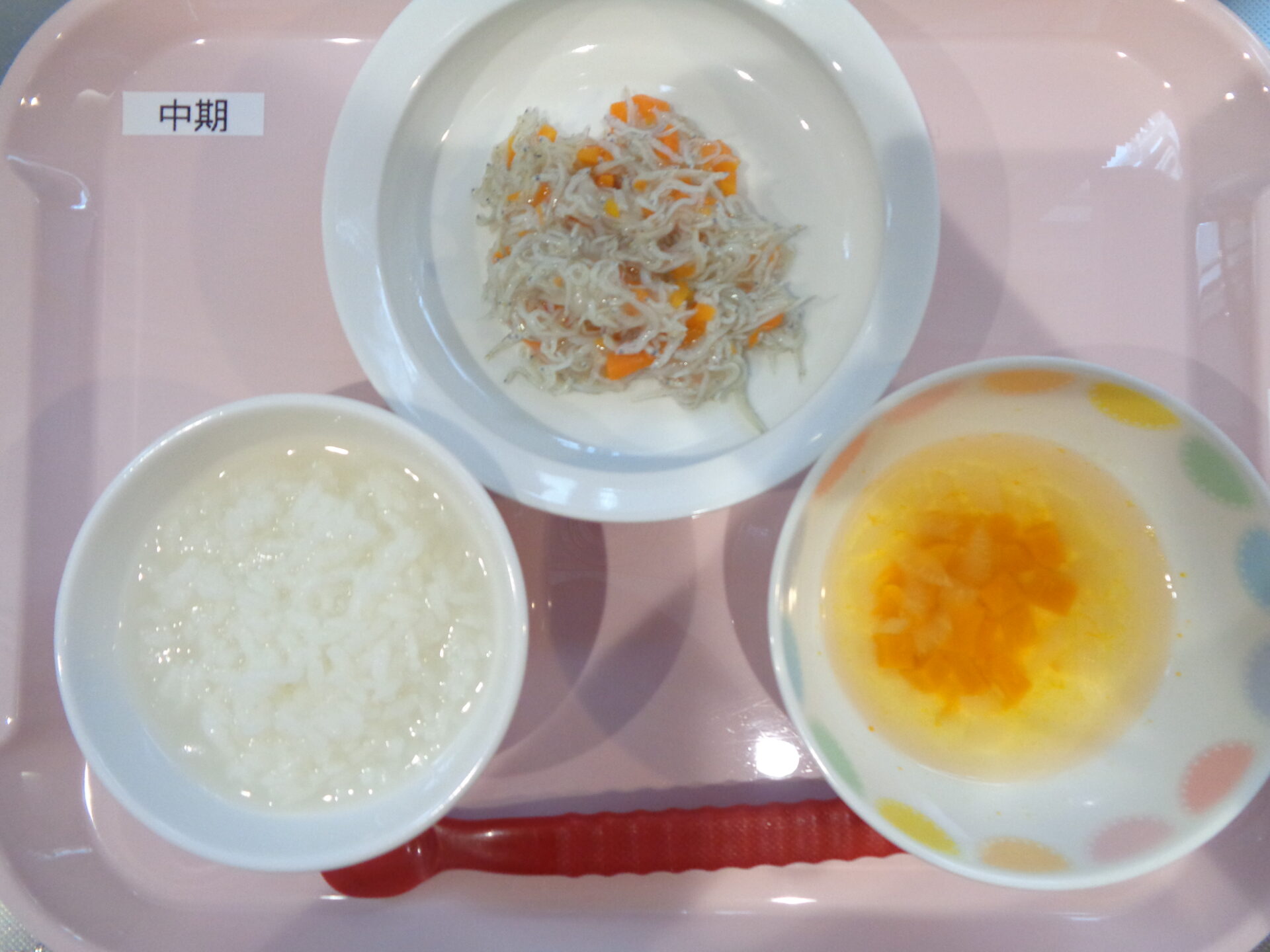 おかゆ・しらすと野菜のトマト煮・かぼちゃのスープ
