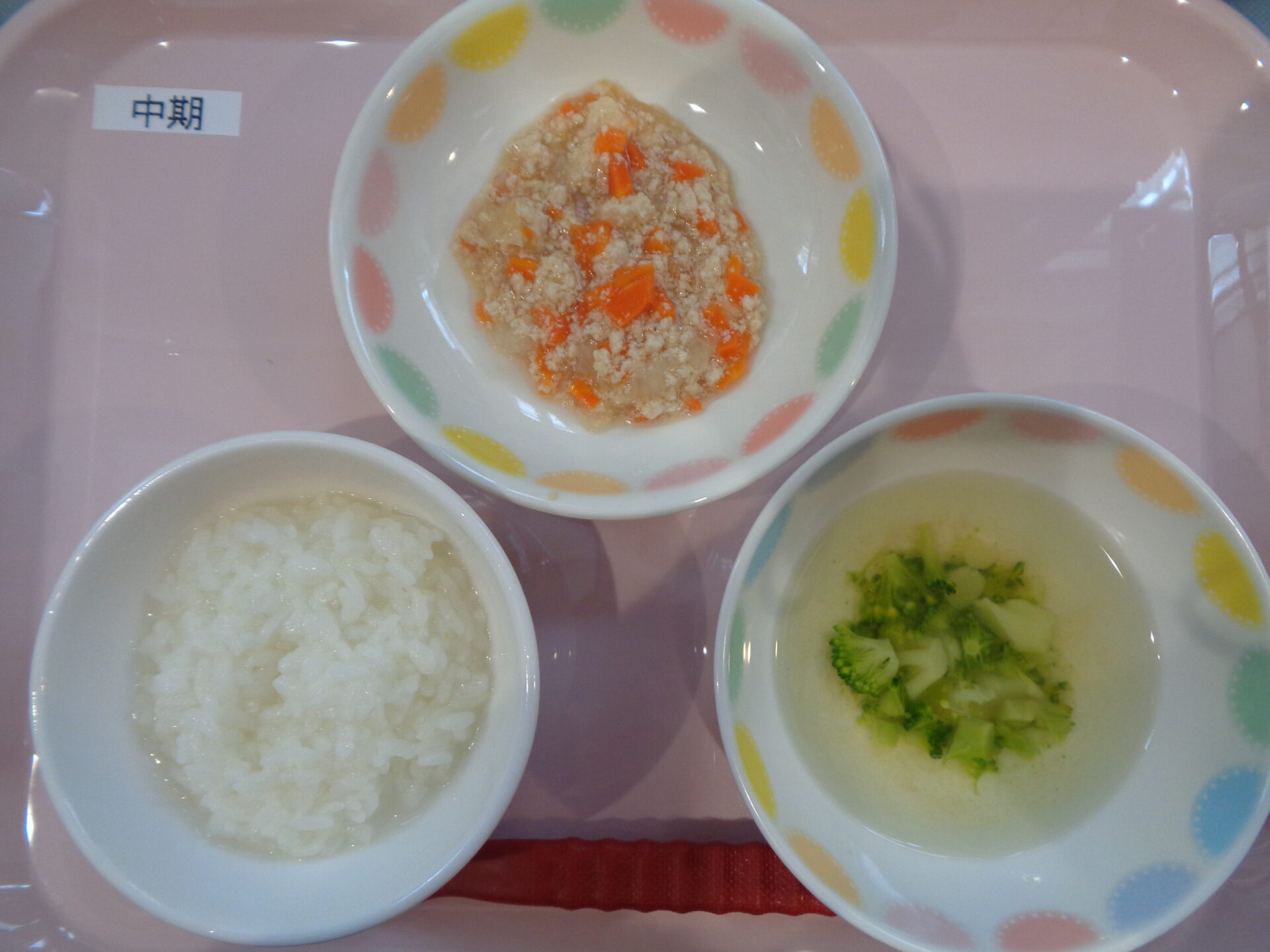 おかゆ・ささみの旨煮・ブロッコリースープ