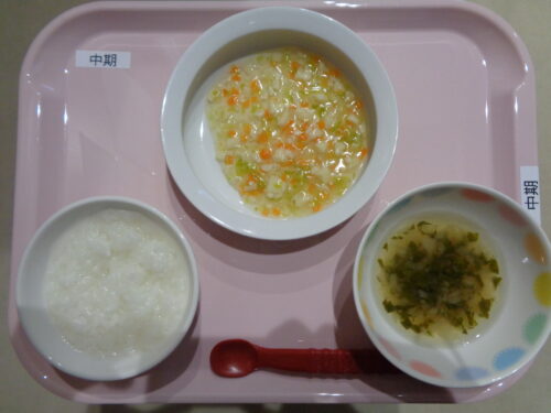 ・ごはん ・魚とキャベツの煮物 ・チンゲン菜のスープ