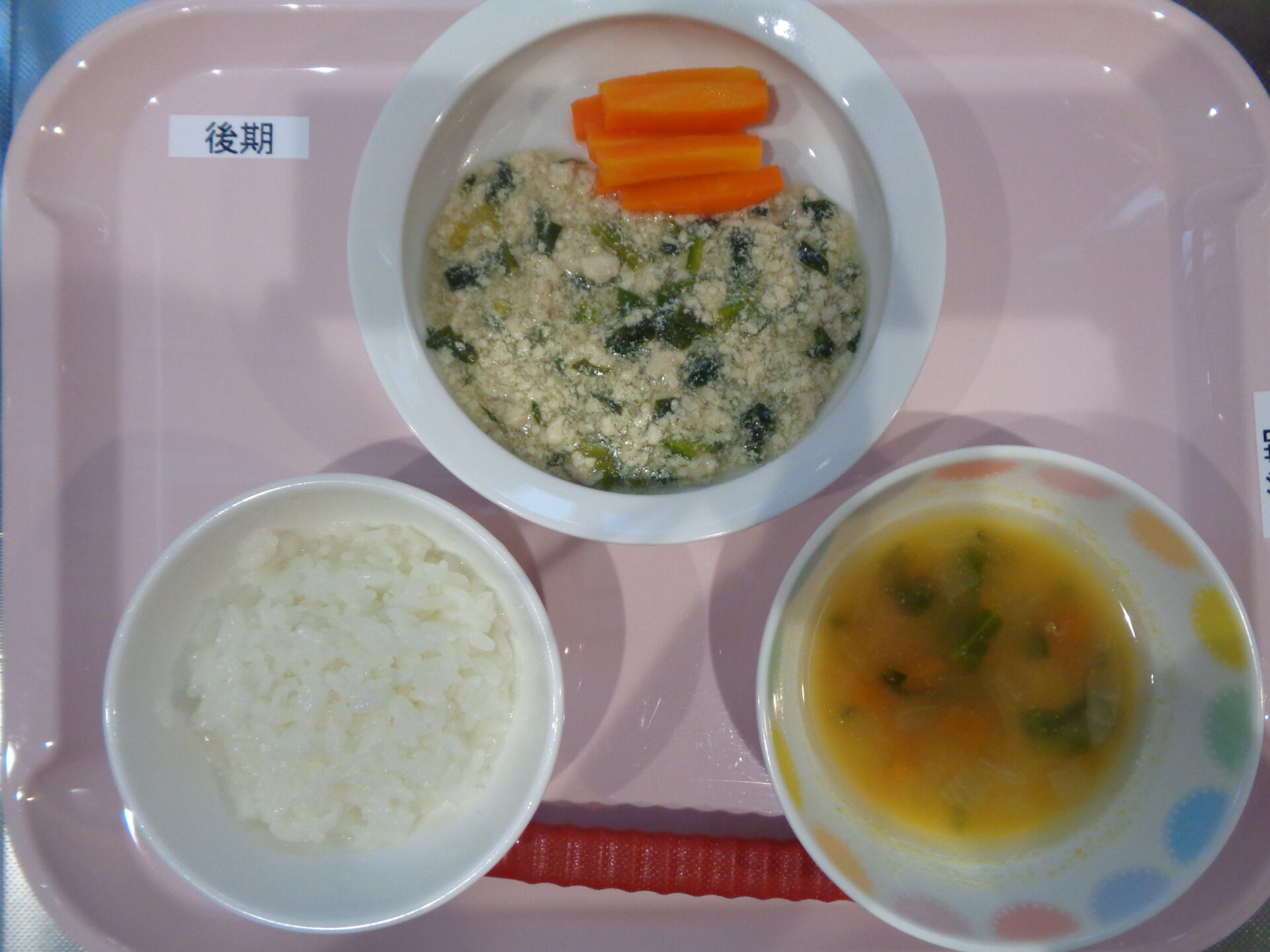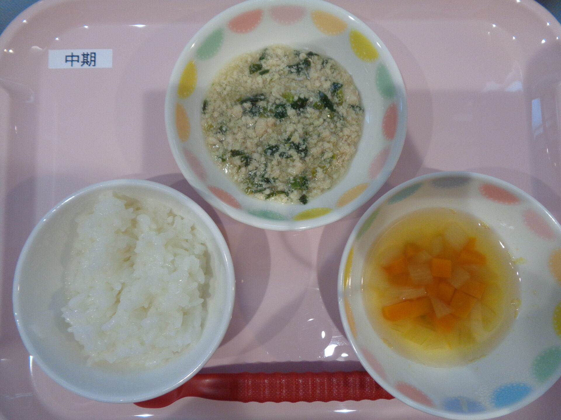 おかゆ・ささみとほうれん草の煮物・かぼちゃのスープ