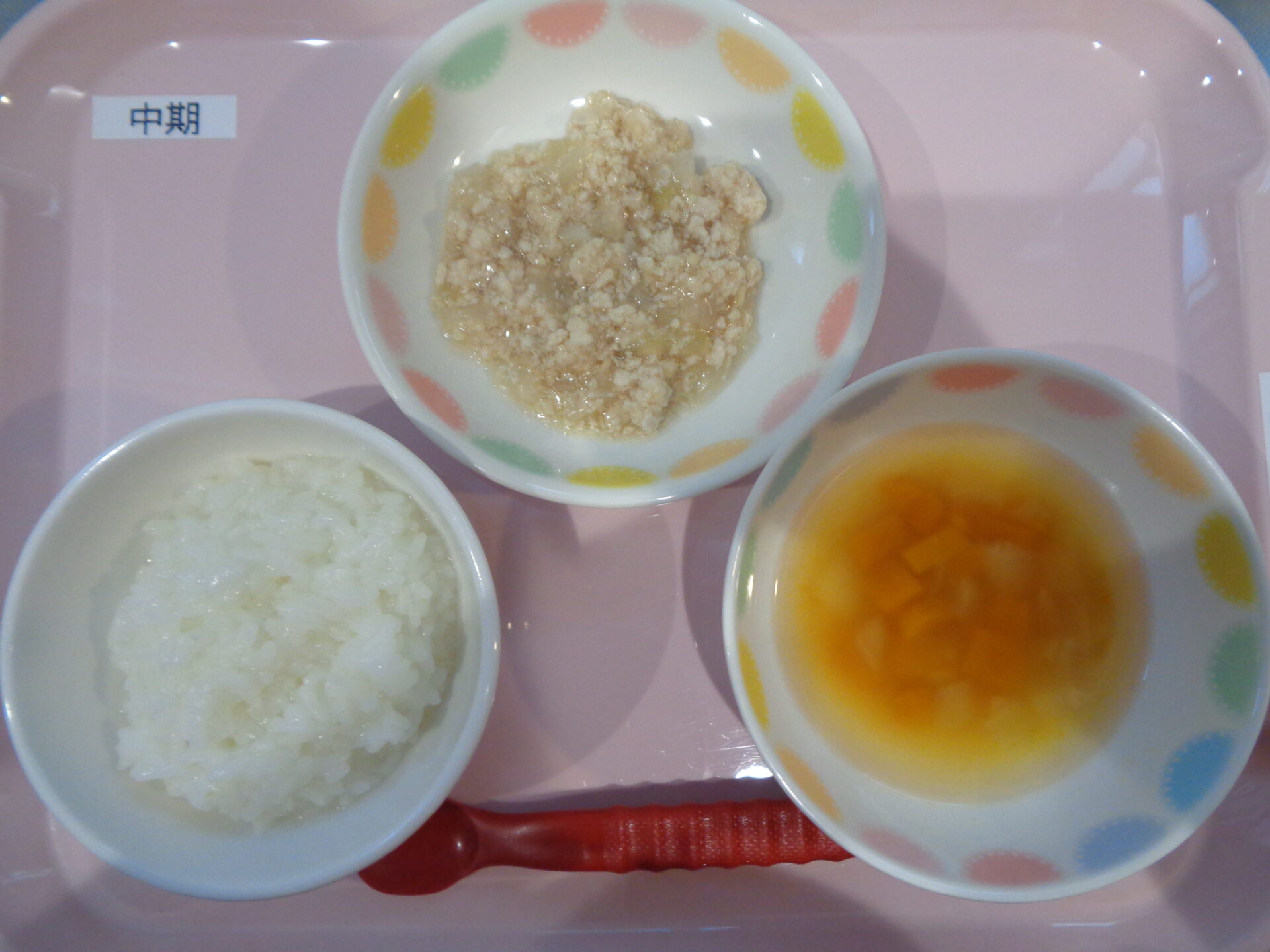 おかゆ・ささみのケチャップ煮・かぼちゃのスープ