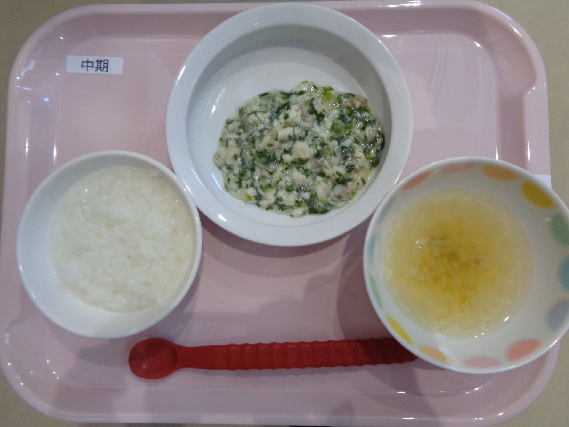 おかゆ・カレイと小松菜の煮物・さつま芋のスープ