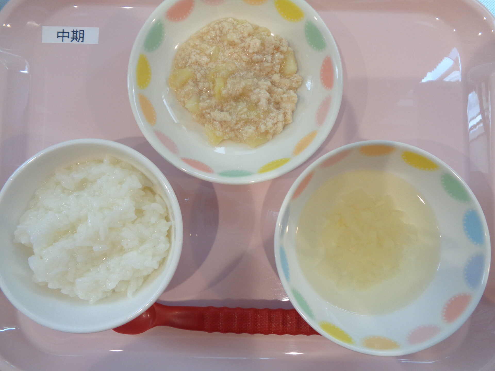 おかゆ・鶏肉とじゃが芋の煮物・大根のすまし汁