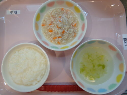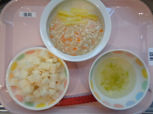・おかゆ ・鶏肉と玉ねぎの煮物 ・白菜スープ