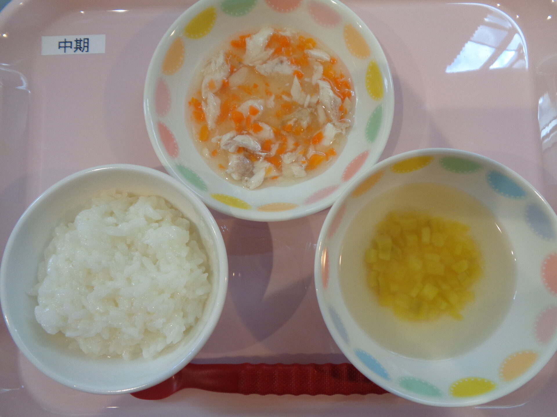 おかゆ・カレイとにんじんの煮物・さつま芋のすまし汁