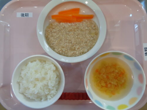 2024.12.10 給食写真 12月10日 給食 【普通食】 ・ご飯 ・豚の生姜焼き ・白菜の塩昆布和え ・もやしとベーコンのスープ 【後期食】 ・軟飯 ・豚肉と玉ねぎの煮物 ・にんじんスティック ・白菜のすまし汁 一覧へ戻る