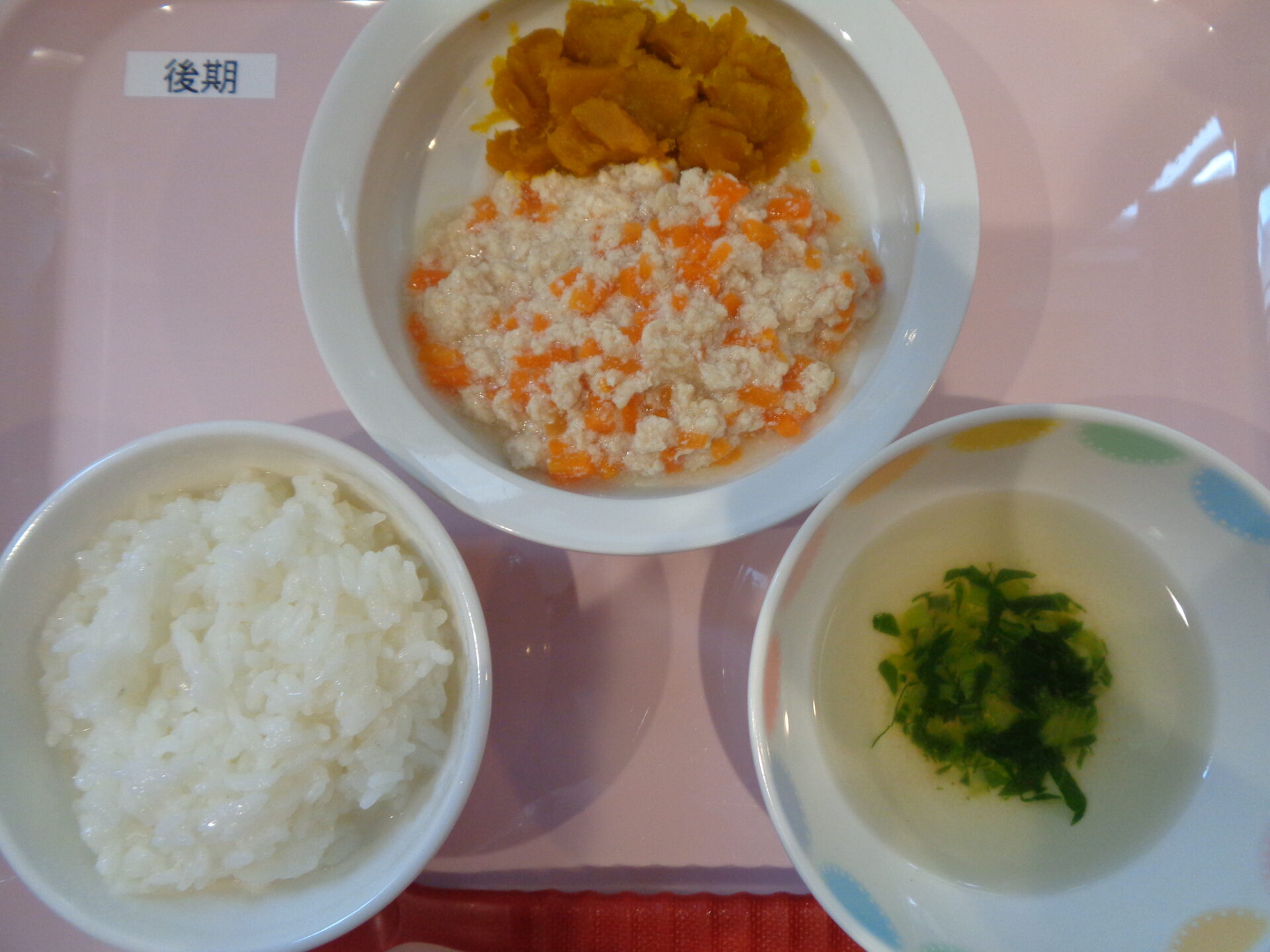2024.12.19 給食写真 2024年12月19日 食育メニュー(茨城県) 【普通食】 ごはん・レンコンつくね焼き・小松菜の納豆和え・ニラ入りスタミナスープ 【離乳食・後期】 軟飯・鶏肉とにんじんの煮物・かぼちゃのスティック・小松菜のすまし汁 一覧へ戻る