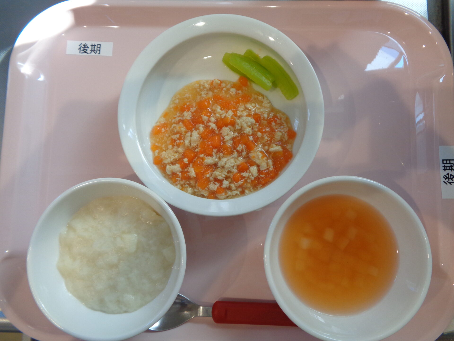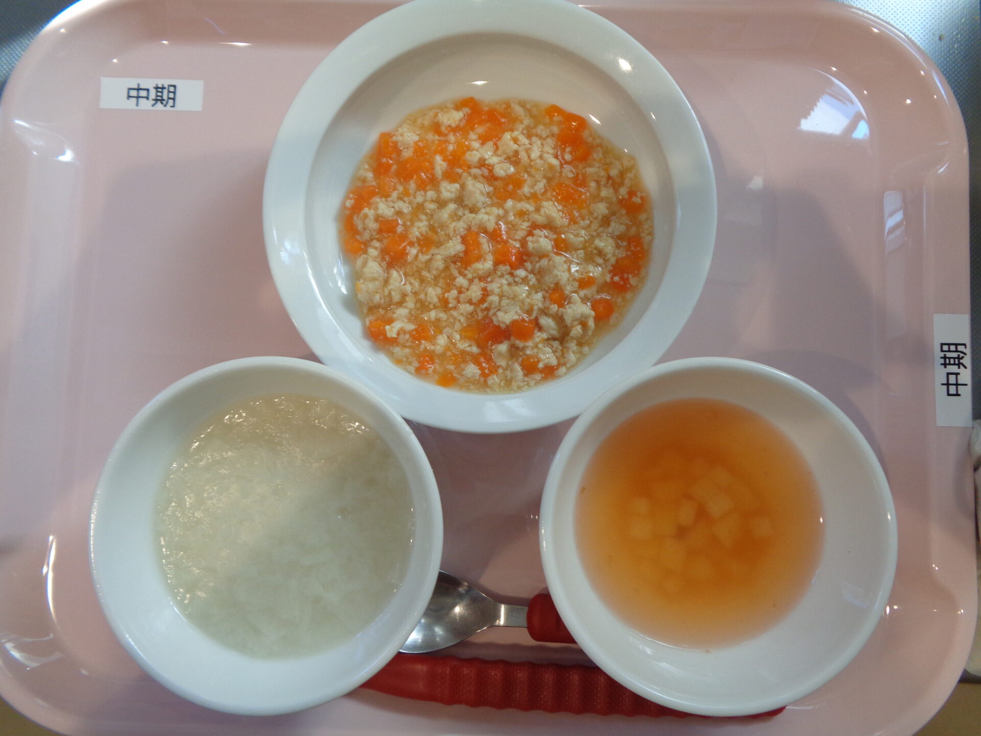 パン粥・とりにくとにんじんの煮物・トマトスープ
