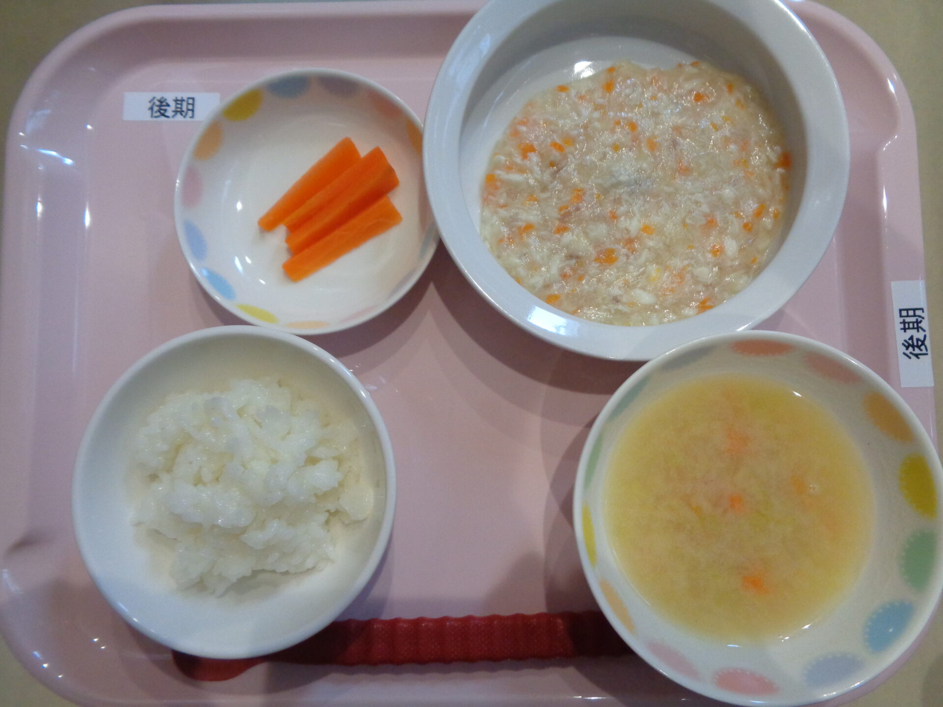2024.12.26 給食写真 2024年12月26日 給食 ご飯・さわらの磯辺焼き・キャベツのツナ和え・なめこの味噌汁 【離乳食・後期】 ・軟飯・かれいと玉ねぎの煮物・にんじんスティック・キャベツの味噌汁 一覧へ戻る